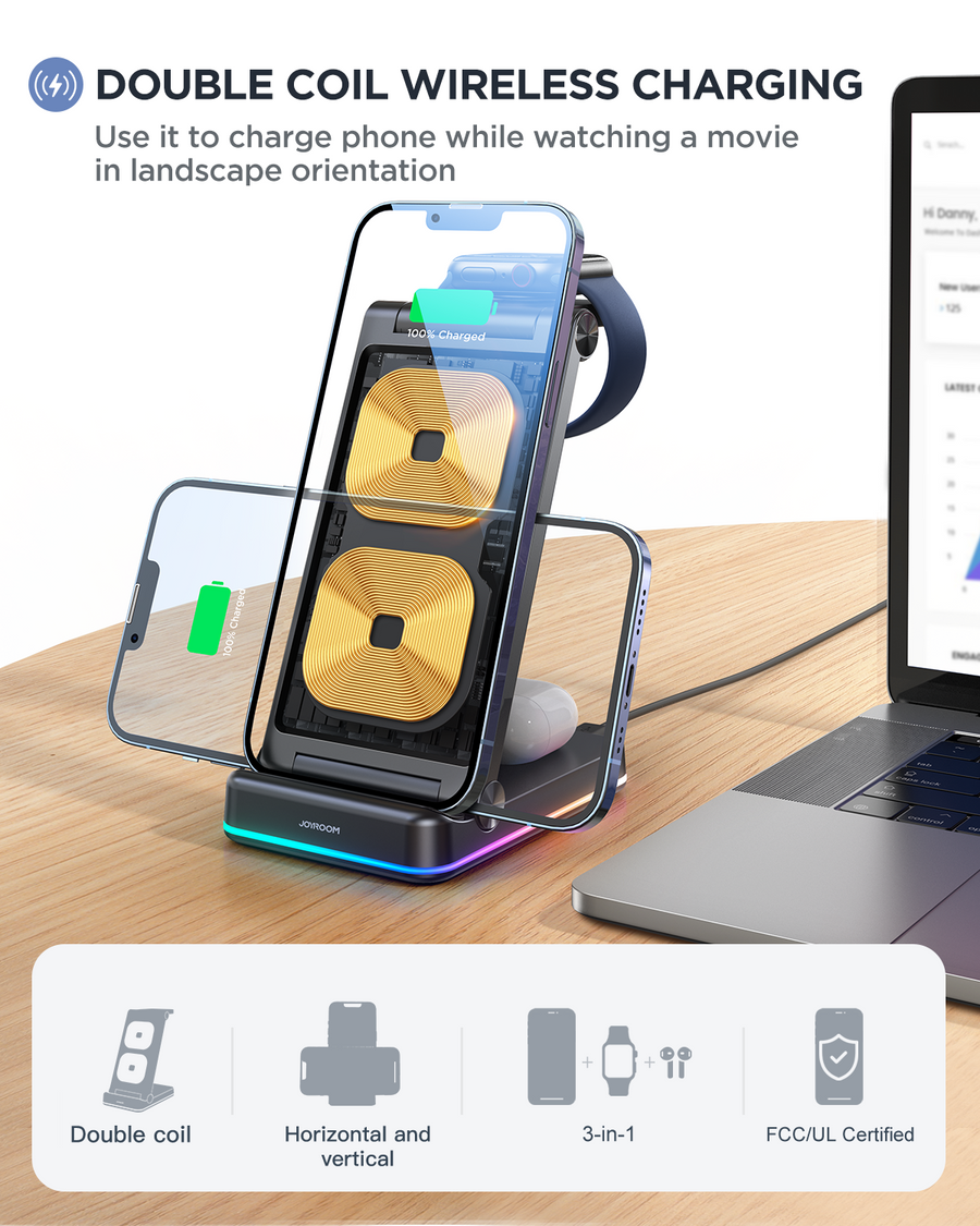 JOYROOM JR-WQN01 3 in 1 Magnetic Charging Station for phone for watch for earphone